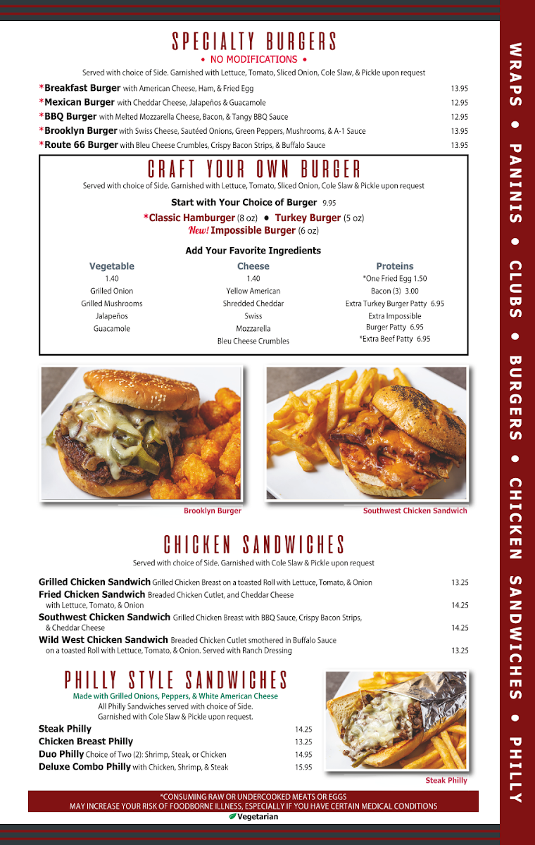 Marinated herb-infused chicken breast meets our premium handtrimmed ribeye steak in this protein-packed powerhouse sandwich that delivers an explosion of complementary flavors. Both meats are flame-grilled to lock in their natural juices before being finely chopped & combined with our signature blend of fire-roasted peppers & caramelized onions. The contrasting flavors of tender, slightly smoky chicken & robust, savory beef create a uniquely satisfying experience that's become a lunch favorite among our regulars. The chicken adds a lighter note to the richness of the steak, creating a perfectly balanced filling that won't leave you overstuffed. Served on our authentic Philadelphia roll with your choice of cheese melted to bubbly perfection, this City Cafe Diner specialty delivers unforgettable flavor in every bite. The subtle marinade on our chicken infuses the entire sandwich with aromatic herbs that elevate the entire experience. Perfect for those who want to experience best sandwich